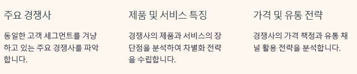 경쟁 동향, 고객 니즈 등을 면밀히 파악하여 효과적인 전략을 수립할 수 있습니다.