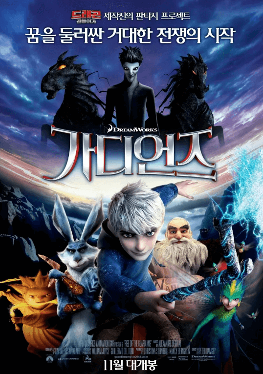 "가디언즈"는 잭 프로스트, 노스(산타클로스), 이빨 요정, 이스터 버니, 샌드맨 등 독특한 가디언 무리를 소개하는 시각적으로 놀랍고 따뜻한 애니메이션 영화입니다. 어린이들의 꿈과 희망을 지켜준다는 공통의 목표로 뭉친 이 캐릭터들은 사악한 피치 블랙에 맞서 스릴 넘치는 모험을 떠납니다.